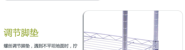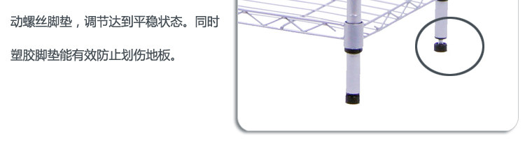 8.置物架不能反转使用,在高低不平的地面先调节螺丝使网片水平;